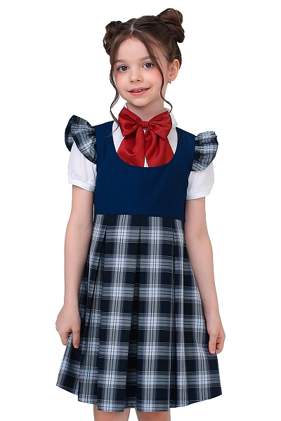Сарафан для девочки с синим клетчатым рисунком сочетает классический стиль и удобство для школьной формы. Материал сохраняет форму и внешний вид после стирок, а модель сидит ровно и не сковывает движения.