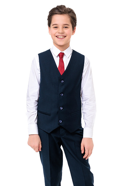 Строгий школьный жилет для мальчика выполнен из качественной костюмной ткани. Модель прямого силуэта на подкладке комфортна в повседневном ношении. Жилет застёгивается на пуговицы спереди. Сзади полнота модели регулируется ремешком на пуговице. Спереди имитация карманов, придающая изделию стильный акцент. Модель позволяет с легкостью комбинировать жилет в деловых образах для школы с рубашкой и брюками. Школьный жилет не потеряет свой первоначальный вид после множества стирок. Хорошая посадка по фигуре, приятная на ощупь ткань, качественный пошив, надежная строчка обеспечат комфортное ношение и повышенную износостойкость, что особенно важно для предмета детского гардероба. Школа, конференция, выпускной, олимпиада, презентация, мероприятий или праздник в данной жилетке ваш подросток непременно станет центром внимания! Эта жилетка — не просто одежда, это возможность выразить свою индивидуальность, уверенность и вкус.